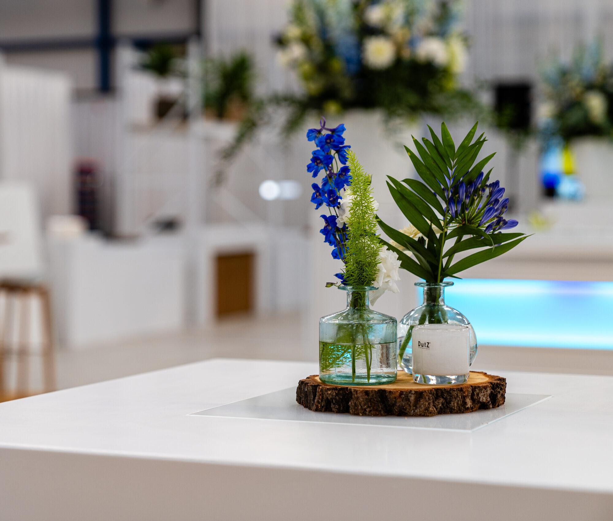 Ons Smooth White thema bestaat uit witte, strak en modern vormgegeven meubelen, waarmee je een frisse en stijlvolle uitstraling creëert. Het witte design vormt de perfecte basis: kleurrijke bloemen en groen komen prachtig tot hun recht!